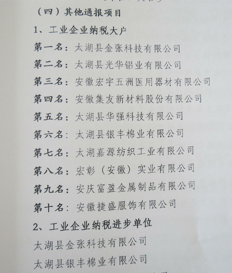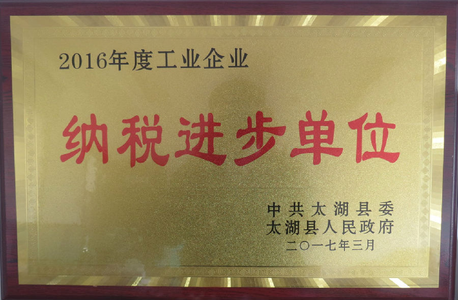金(jīn)張科(kē)技(jì)獲太湖(hú)縣2016年(nián)度納稅大(dà)戶第一(yī)名